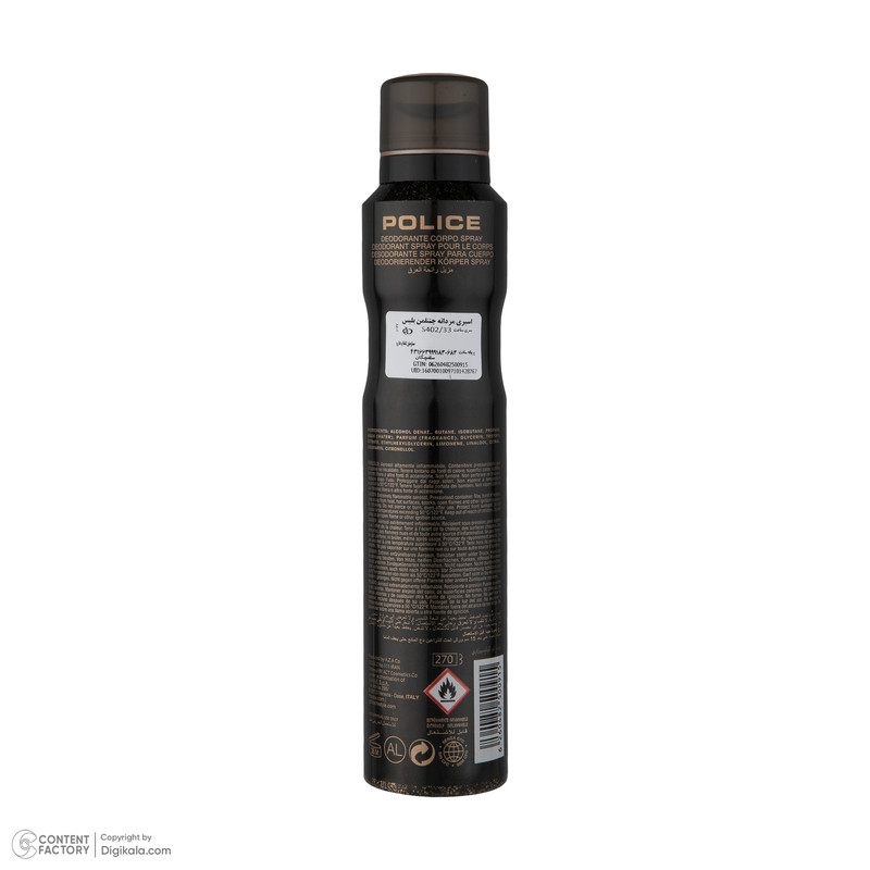اسپری بدن یکی از پرکاربردترین وسایل بهداشتی برای همه می باشد که میتواند در هر جمعی، میزان اعتماد به نفس آن فرد را افزایش دهد، اسپری خوشبوکننده بدن استاسپری پلیس مدل جنتلمن در حجم ۲۰۰ میل، ماندگاری بالایی روی بدن داشته و پوست را حتی در فصل داغ تابستان، خوشبو نگه میدارد. اسپری مردانه جنتلمن پلیس ۲۰۰ میل، برگرفته از عطر جذاب لیمو و گریپفروت بوده و رایحهای تلخ و کاریزماتیک دارد.