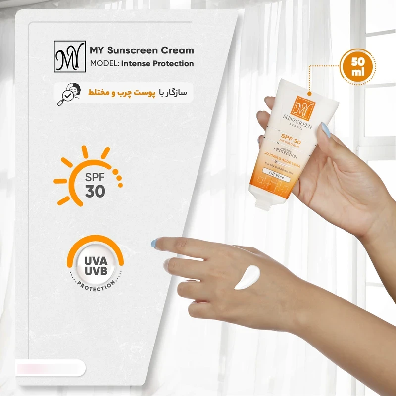 کرم ضدآفتاب مای SPF30 مخصوص پوست های چرب و مختلط مدل بی رنگ