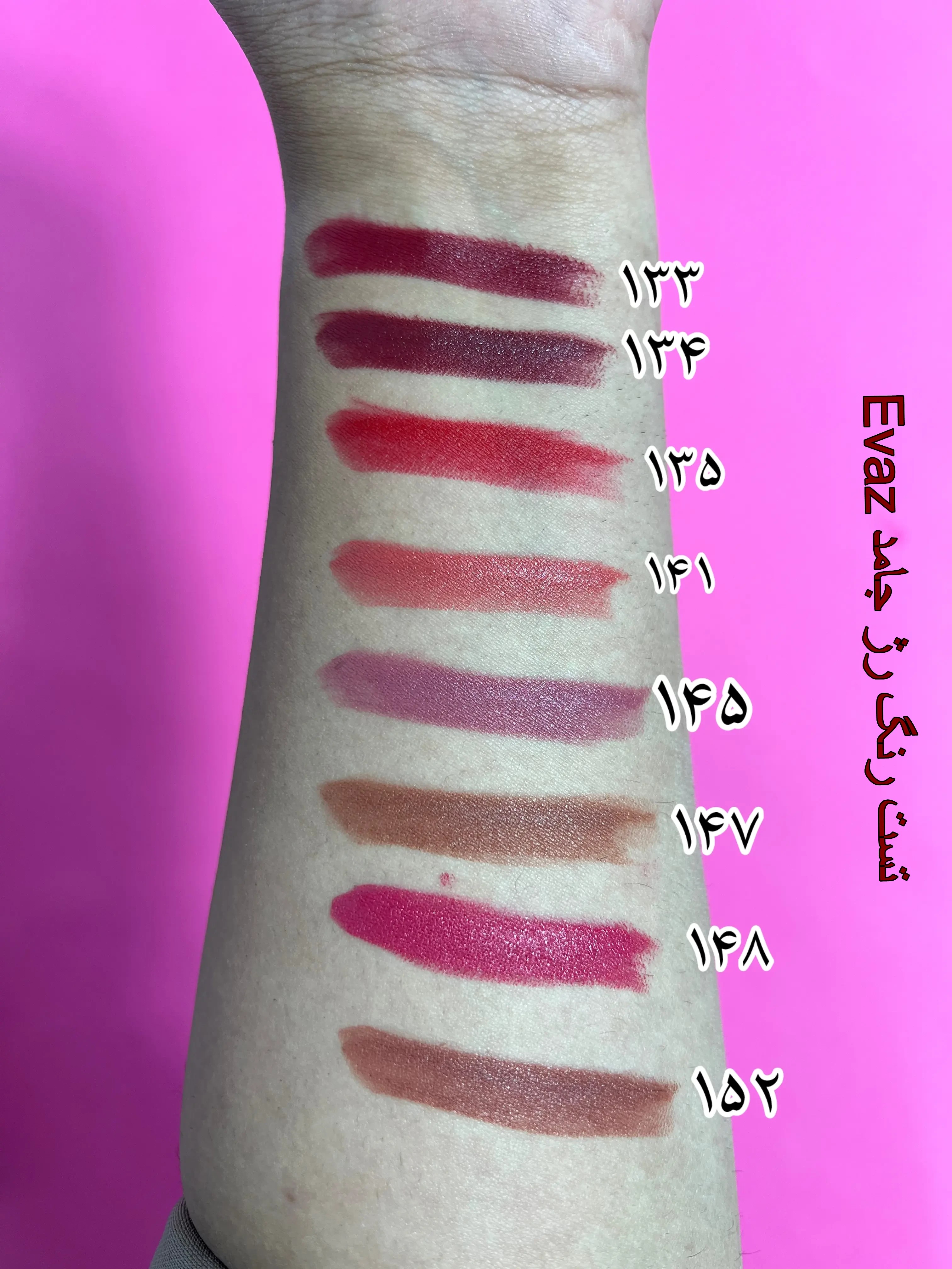 رژ لب جامد ای واز Evaz مدل Flower شماره 132 در تصاویر کالا مشص شده است و همچنین تست رنگ شماره 132 نیز به صورت جدا مشخص شده است.