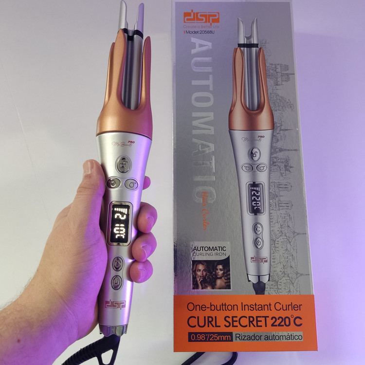 فرکننده مو دی اس پی مدل 20588u محصولی جدید و فوق العاده برای فر کردن و حالت دادن به موی سر در کوتاه ترین زمان ممکن به صورت اتوماتیک می باشداگر به دنبال یک فرکننده و حالت دهنده مو حرفهای، سریع و بدونخطر می باشید، فر کننده مو دی اس پی مدل One Button Instant Curler 20588U یک ابزار حرفه ای برای حالت دهی به موهاست کافی است که ابتدا دمای دستگاه را تنظیم کنید سپس موی خود را درون میله چرخشی دستگاه قرار دهید و با توجه به نوع فر دکمه چرخش به سمت چپ یا راست را انتخاب کنید و دستگاه با چرخش ملایم در عرض 60 ثانیه دستگاه موی شما را فر کرده و حاضر شما تحویل می دهد. فرکننده مو دی اس پی مدل 20588u که با طراحی مدرن و تکنولوژی سرامیکی تجربه ای بی نظیر را برای شما فراهم میکند.دستگاه کرلی مو dsp انتخابی هوشمندانه برای شماست. این دستگاه با سیستم چرخش اتوماتیک، تنها با فشردن یک دکمه، موها را به صورت یکنواخت و منظم فر میکند. سایز 25 میلیمتری این مدل، مناسب ایجاد فرهای متوسط، طبیعی و ماندگار بوده و برای انواع مو (نازک، معمولی و ضخیم) کاربرد دارد. وجود نمایشگر دیجیتال روی بدنه، امکان کنترل دقیق دما را فراهم میکند.
